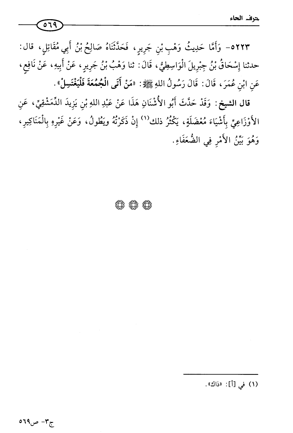 5223 - وأما حديث وهب بن جرير؛ فحدثناه صالح بن أبي مقاتل، قال: حَدثنا إسحاق بن جبريل الواسطي، قال: حَدثنا وهب بن جرير، عن أبيه، عن نافع، عن ابن عُمر، قال: قال رسول الله صَلى الله عَليه وسَلم: من أتى الجمعة فليغتسل.