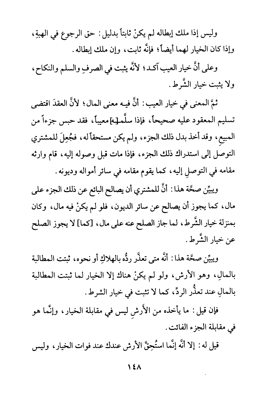 ويبين صحة هذا: أنه متى تعذر رده بالهلاك أو نحوه، ثبتت المطالبة بالمال، وهو الأرش، ولو لم يكن هناك إلا الخيار لما ثبتت المطالبة بالمال عند تعذر الرد، كما لا تثبت في خيار الشرط.
