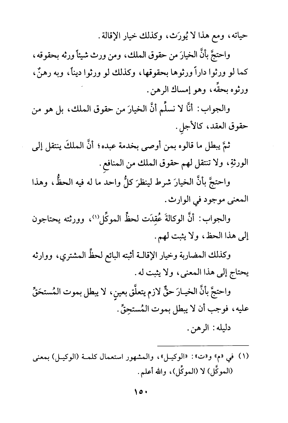 واحتج بأن الخيار من حقوق الملك، ومن ورث شيئًا ورثه بحقوقه، كما لو ورثوا دارًا ورثوها بحقوقها، وكذلك لو ورثوا دينًا، وبه رهن، ورثوه بحقه، وهو إمساك الرهن.