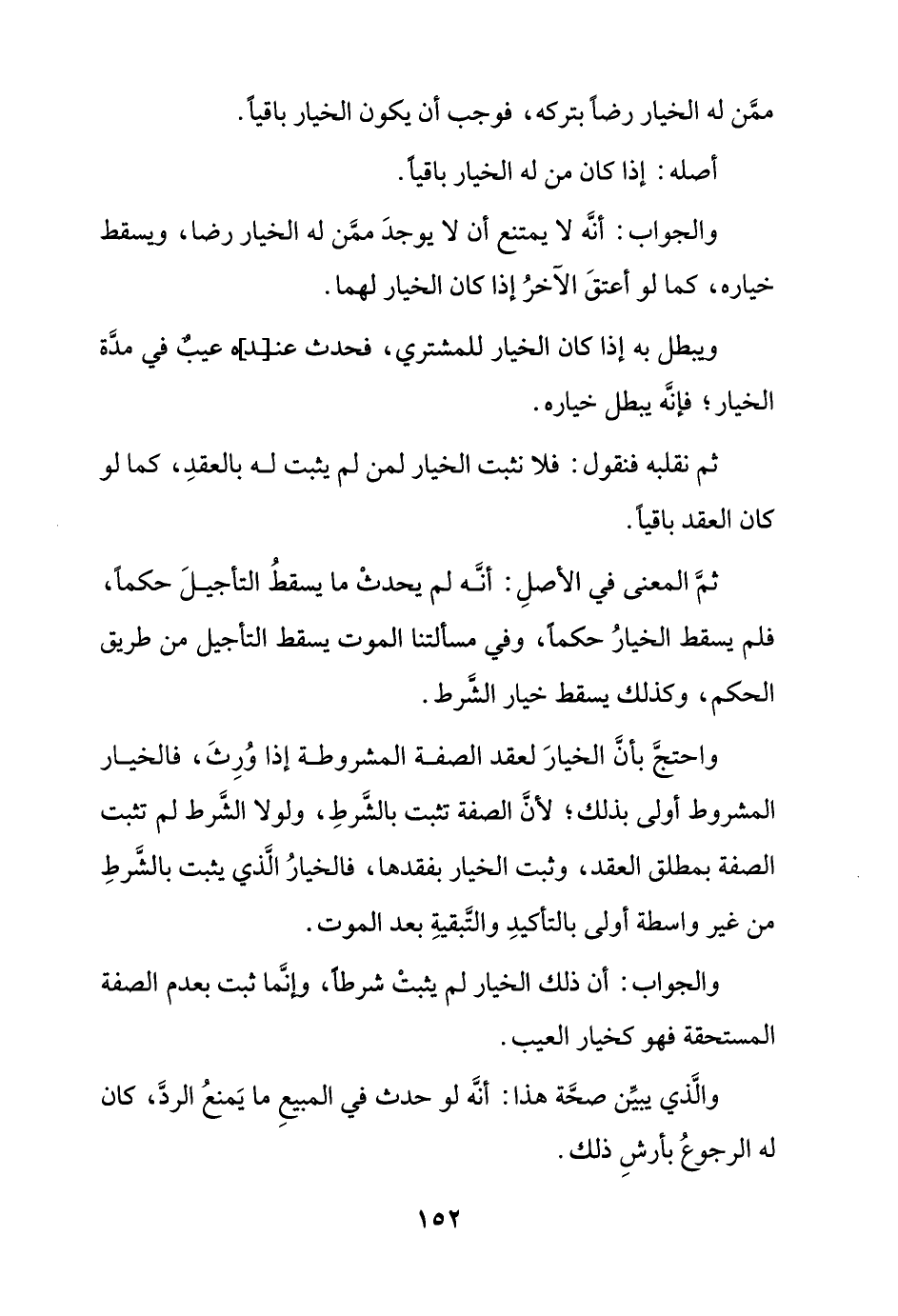 ثم المعنى في الأصل: أنه لم يحدث ما يسقط التأجيل حكمًا، فلم يسقط الخيار حكمًا، وفي مسألتنا الموت يسقط التأجيل من طريق الحكم، وكذلك يسقط خيار الشرط.