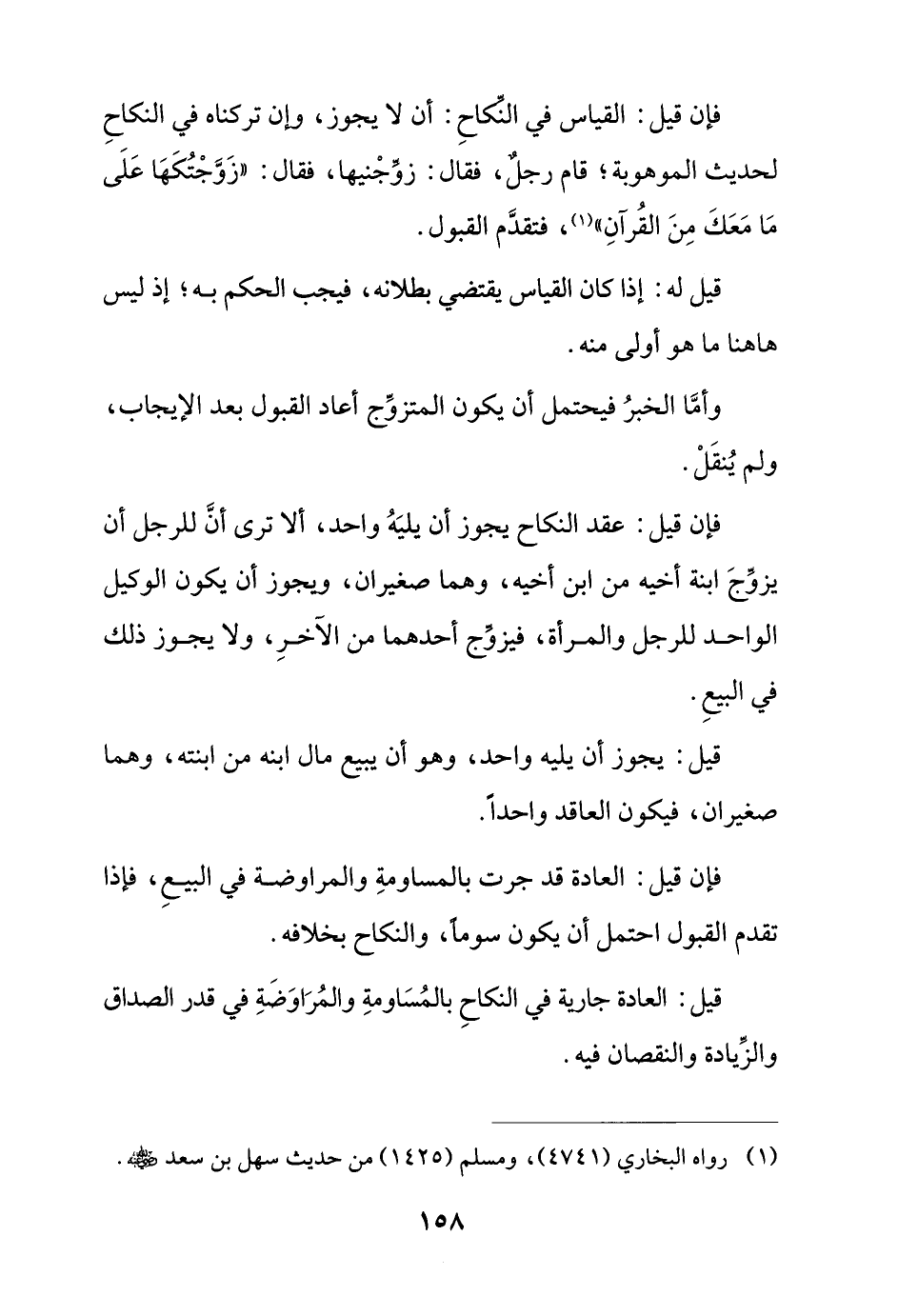 فإن قيل: القياس في النكاح: أن لا يجوز، وإن تركناه في النكاح لحديث الموهوبة؛ قام رجل، فقال: زوجنيها، فقال: (زوجتكها على ما معك من القرآن)، فتقدم القبول.