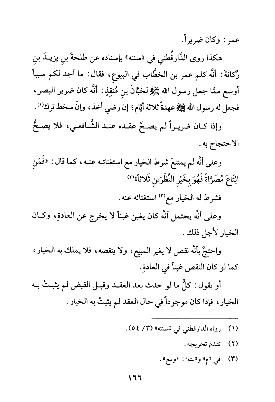 هكذا روى الدارقطني في (سننه) بإسناده عن طلحة بن يزيد بن ركانة: أنه كلم عمر بن الخطاب في البيوع، فقال: ما أجد لكم سببًا أوسع مما جعل رسول الله - صلى الله عليه وسلم - لحبان بن منقذٍ: أنه كان ضرير البصر، فجعل له رسول الله - صلى الله عليه وسلم - عهدة ثلاثة أيام؛ إن رضي أخذ، وإن سخط ترك.