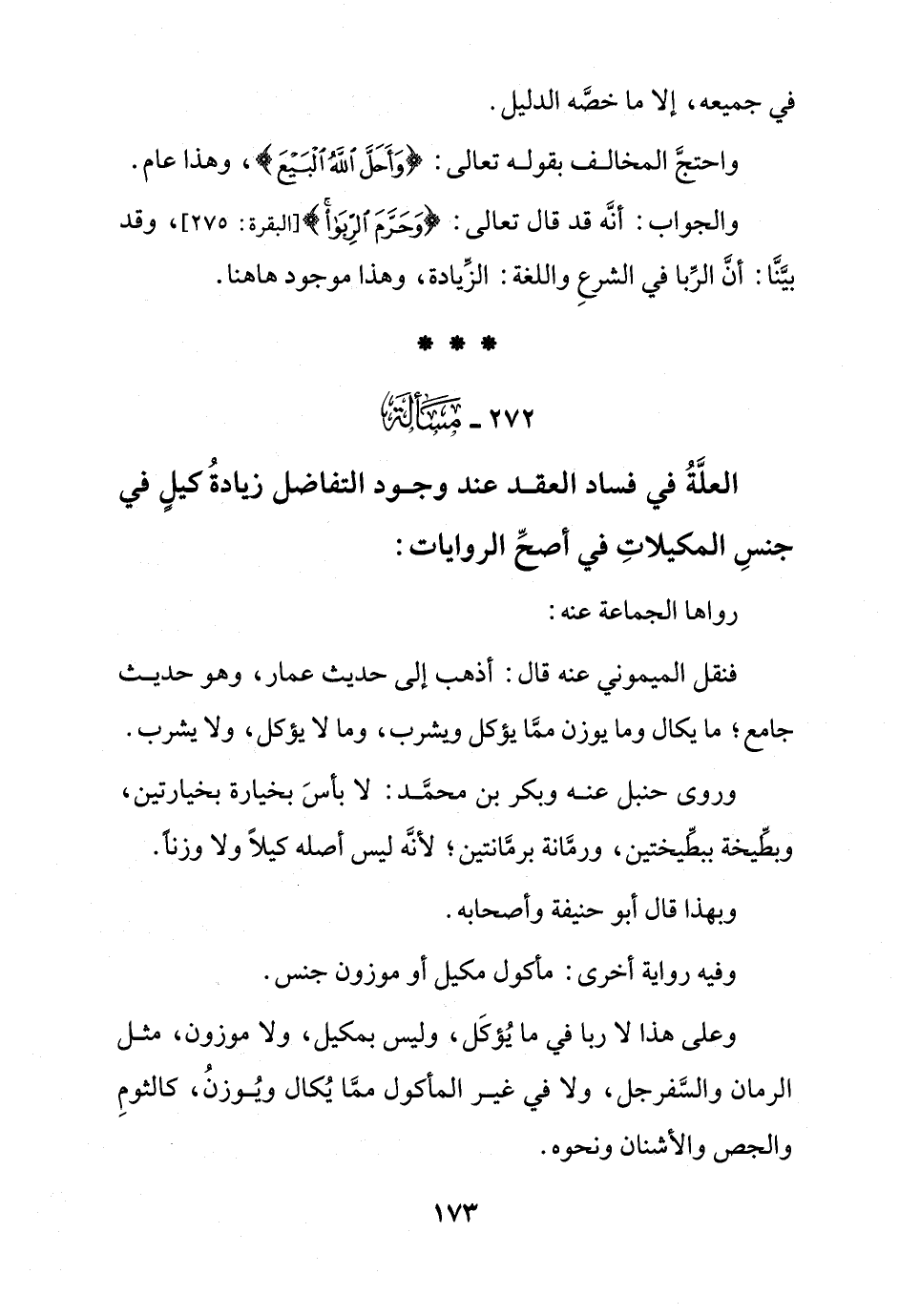 العلة في فساد العقد عند وجود التفاضل زيادة كيلٍ في جنس المكيلات في أصح الروايات: