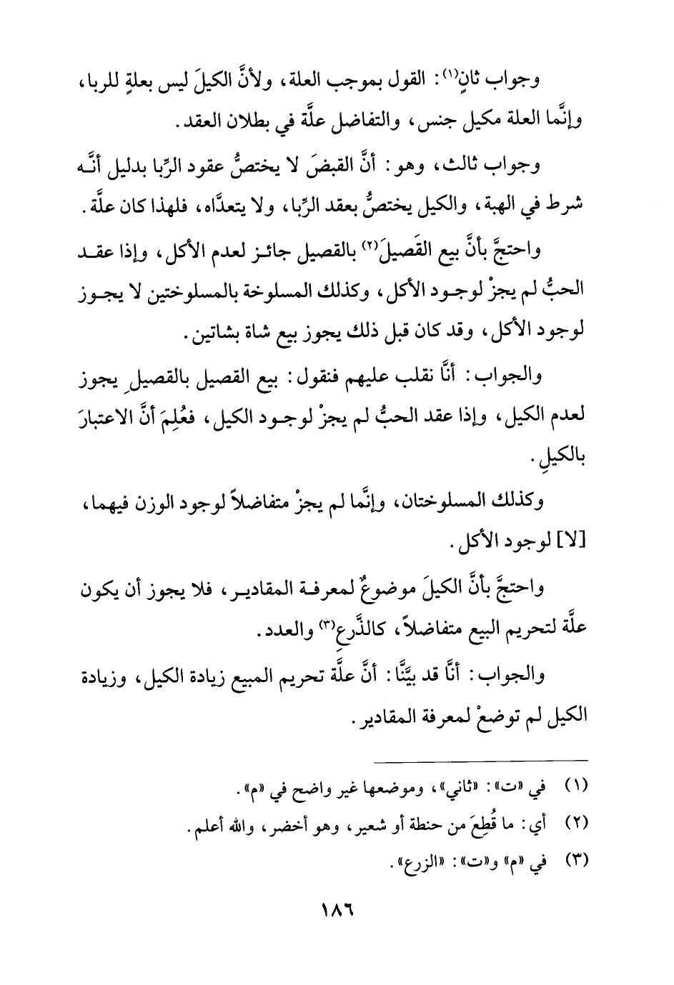 وجواب ثانٍ: القول بموجب العلة، ولأن الكيل ليس بعلةٍ للربا، وإنما العلة مكيل جنس، والتفاضل علة في بطلان العقد.