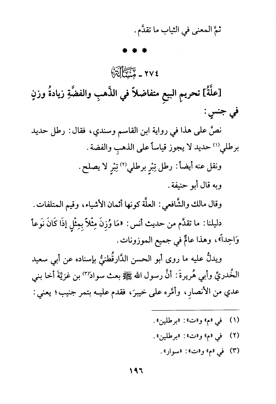 نص على هذا في رواية ابن القاسم وسندي، فقال: رطل حديد برطلي حديد لا يجوز قياسًا على الذهب والفضة.