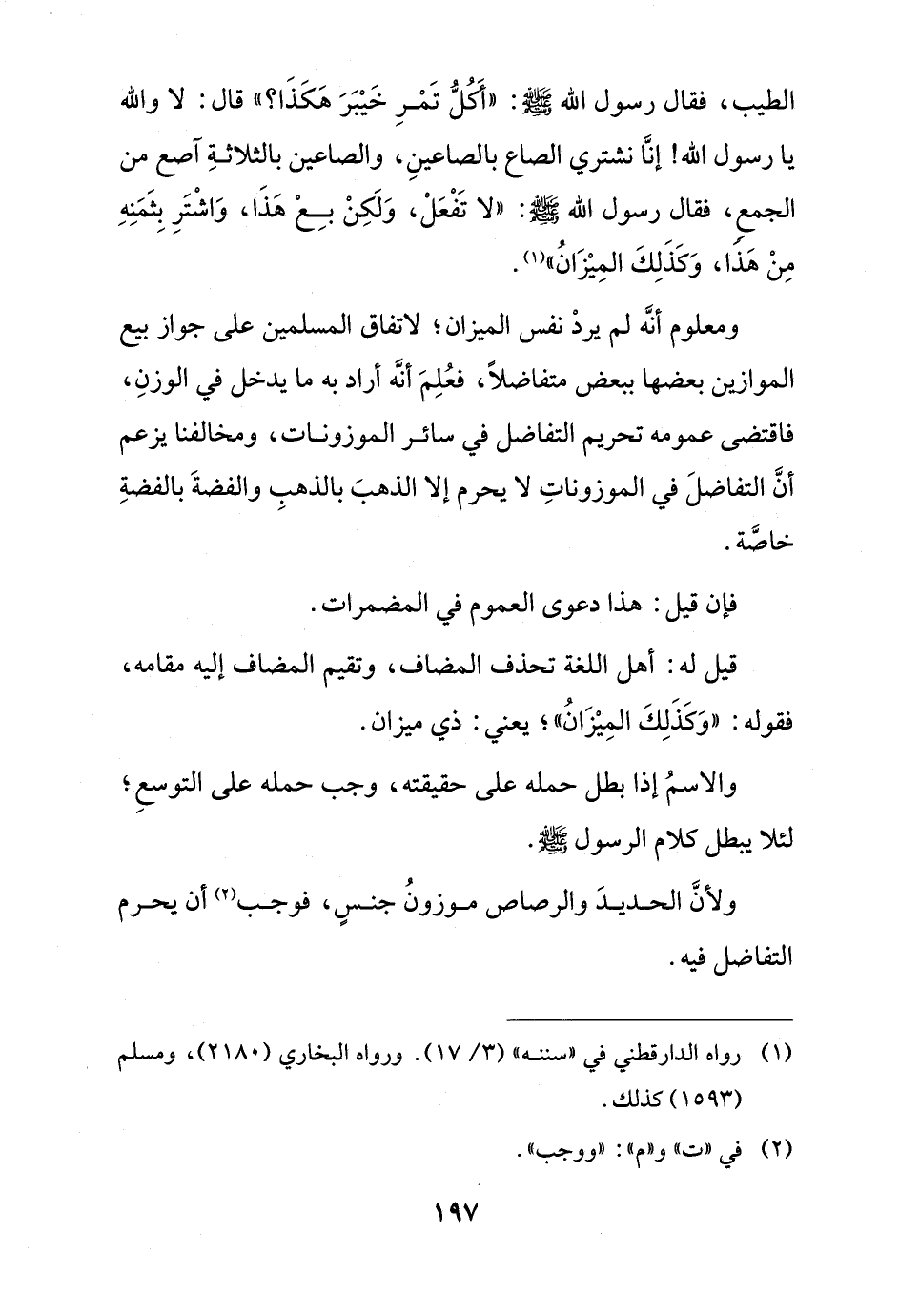 الطيب، فقال رسول الله - صلى الله عليه وسلم - " (أكل تمر خيبر هكذا؟) قال: لا والله يا رسول الله! إنا نشتري الصاع بالصاعين، والصاعين بالثلاثة آصع من الجمع، فقال رسول الله - صلى الله عليه وسلم -: (لا تفعل، ولكن بع هذا، واشتر بثمنه من هذا، وكذلك الميزان).