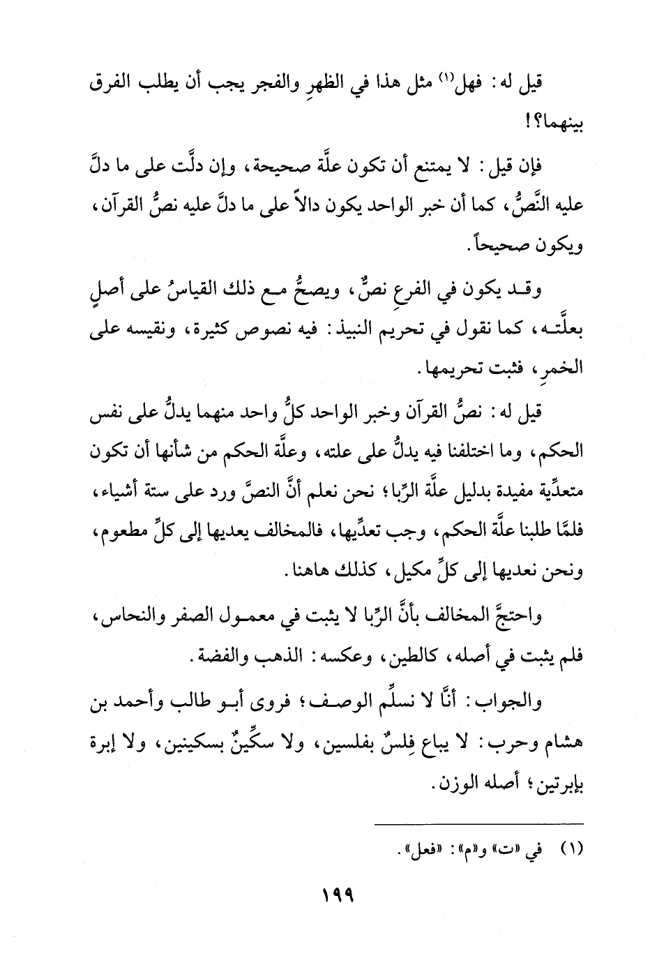 قيل له: نص القرآن وخبر الواحد كل واحد منهما يدل على نفس الحكم، وما اختلفنا فيه يدل على علته، وعلة الحكم من شأنها أن تكون متعدية مفيدة بدليل علة الربا؛ نحن نعلم أن النص ورد على ستة أشياء، فلما طلبنا علة الحكم، وجب تعديها، فالمخالف يعديها إلى كل مطعوم، ونحن نعديها إلى كل مكيل، كذلك هاهنا.