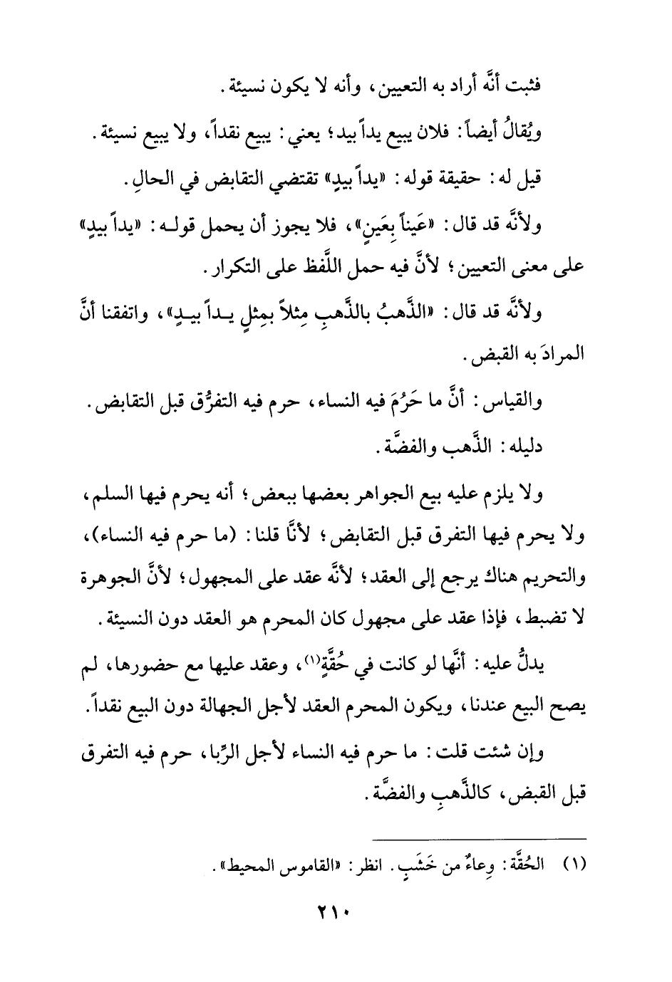 فثبت أنه أراد به التعيين, وأنه لا يكون نسيئة.