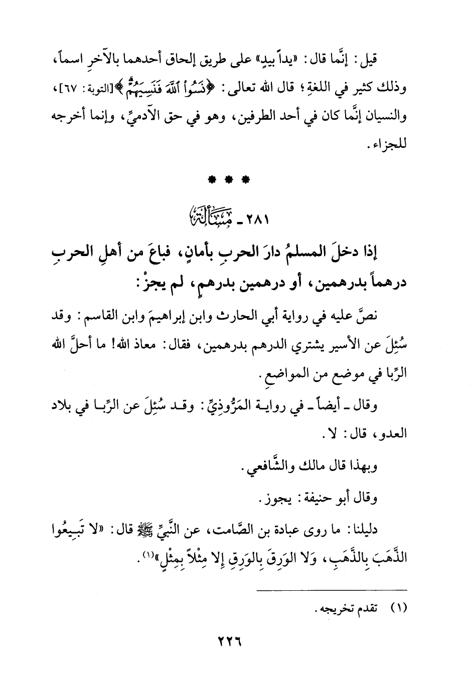 وقال- أيضًا- في رواية المروذي: وقد سئل عن الربا في بلاد العدو, قال: لا.