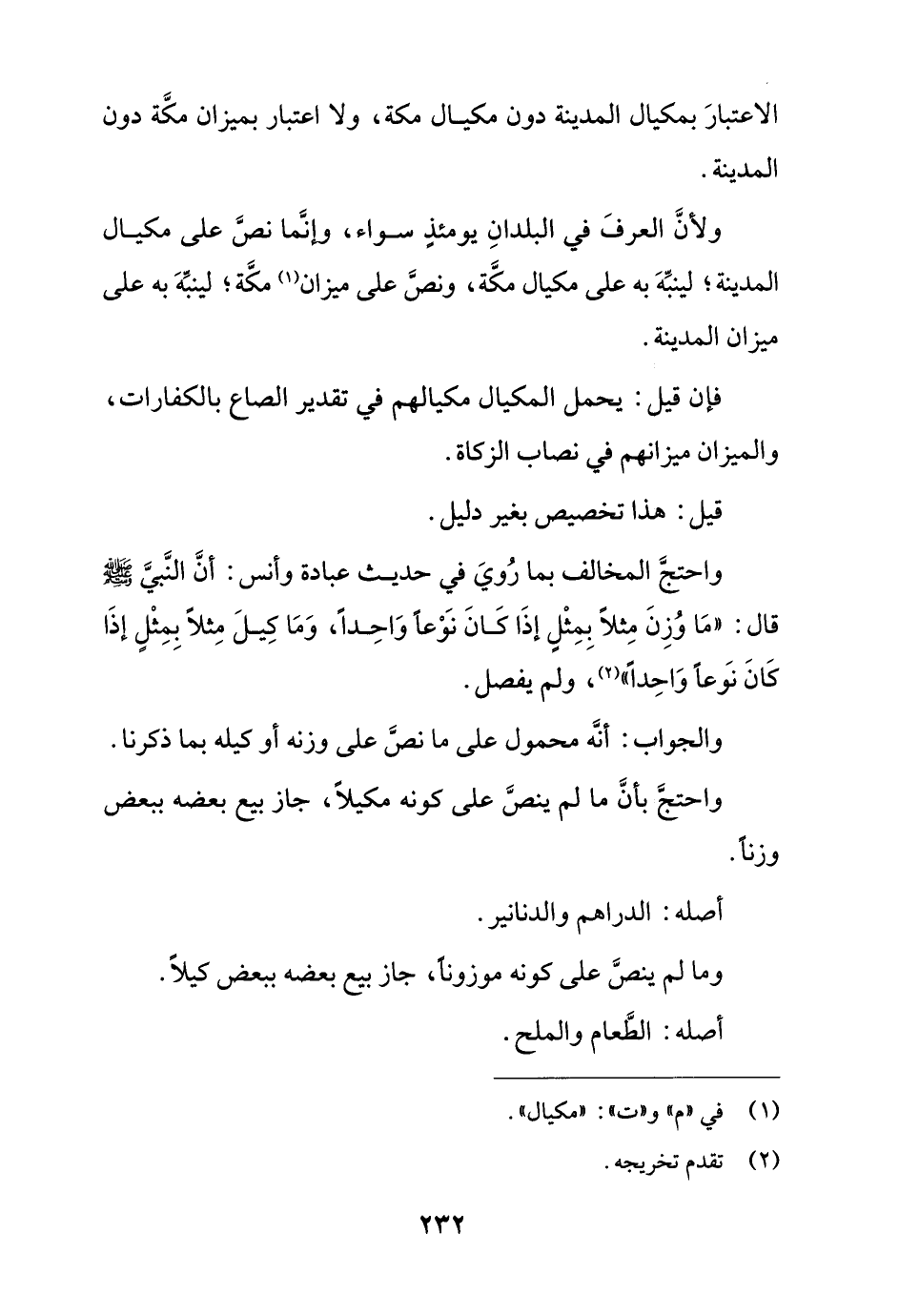 ولأن العرف في البلدان يومئذ سواء, وإنما نص على مكيال المدينة؛ لينبه به على مكيال مكة, ونص على ميزان مكة؛ لينبه به على ميزان المدينة.