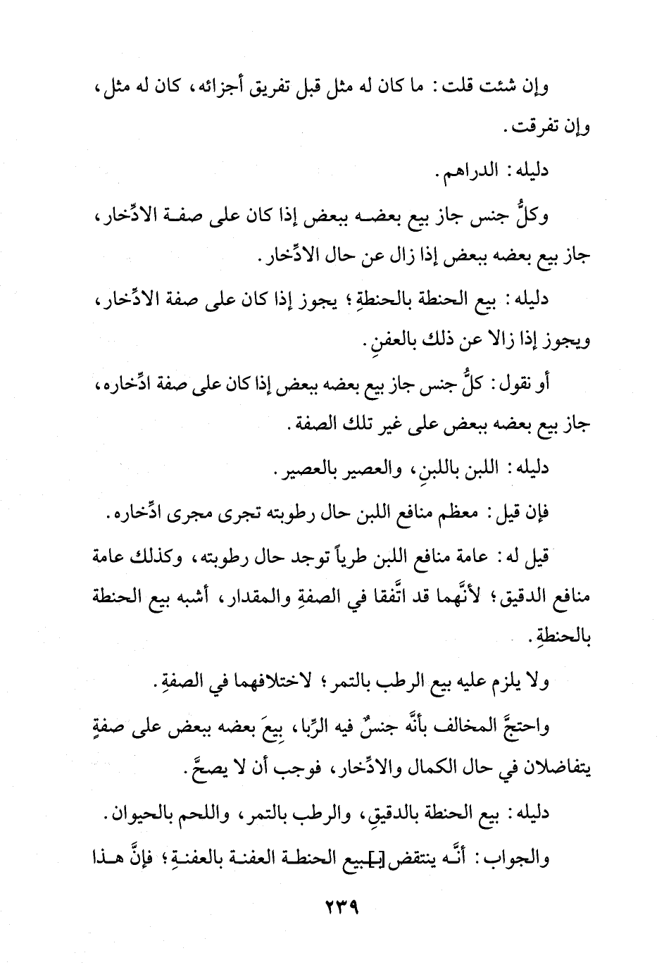 دليله: اللبن باللبن, والعصير بالعصير.