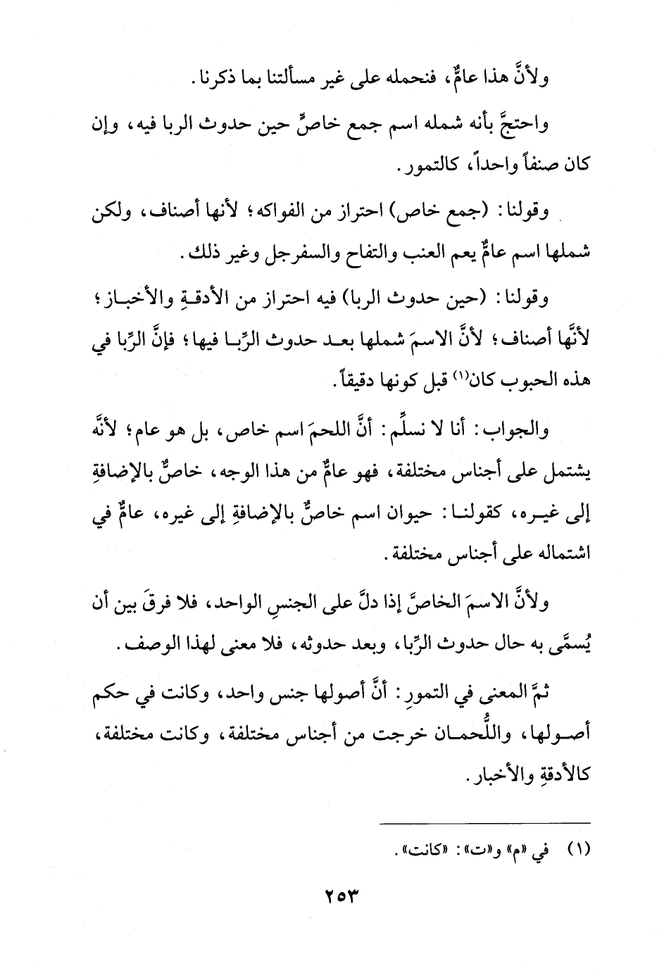 والجواب: أنا لا نسلم: أن اللحم اسم خاص, بل هو عام؛ لأنه يشتمل على أجناس مختلفة, فهو عام من هذا الوجه, خاص بالإضافة إلى غيره, كقولنا: حيوان اسم خاص بالإضافة إلى غيره, عام في اشتماله على أجناس مختلفة.