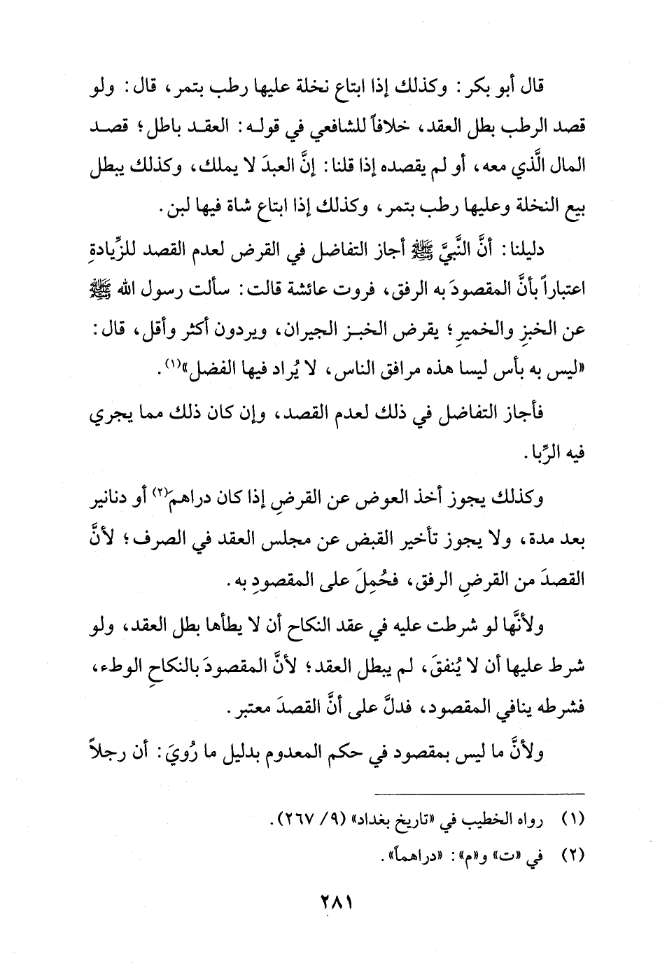 دليلنا: أن النبي - صلى الله عليه وسلم - أجاز التفاضل في القرض لعدم القصد للزيادة اعتبارًا بأن المقصود به الرفق, فروت عائشة قالت: سألت رسول الله - صلى الله عليه وسلم - عن الخبز والخمير؛ يقرض الخبز الجيران, ويردون أكثر وأقل, قال: (ليس به بأس ليسا هذه مرافق الناس, لا يراد فيها الفضل).