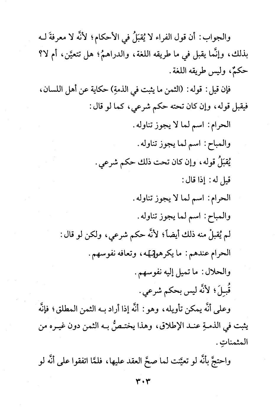 والجواب: أن قول الفراء لا يقبل في الأحكام؛ لأنه لا معرفة له بذلك، وإنما يقبل في ما طريقة اللغة، والدراهم؛ هل تتعين، أم لا؟