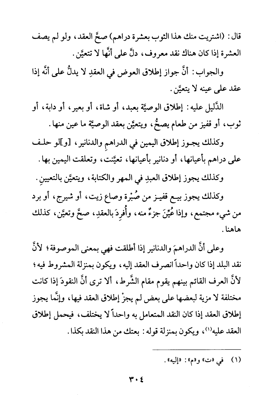 والجواب: أن جواز إطلاق العوض في العقد لا يدل على أنه إذا عقد على عينه لا يتعين.