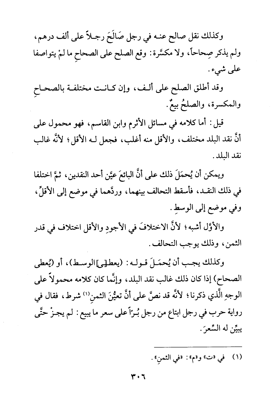 وكذلك يجب أن يحمل قوله: (يعطى الوسط)، أو (يعطى الصحاح) إذا كان ذلك غالب نقد البلد، وإنما كان كلامه محمولًا على الوجه الذي ذكرنا؛ لأنه قد نص على أن تعين الثمن شرط، فقال في رواية حرب في رجل ابتاع من رجل برًا على سعر ما يبيع: لم يجز حتى يبين له السعر.