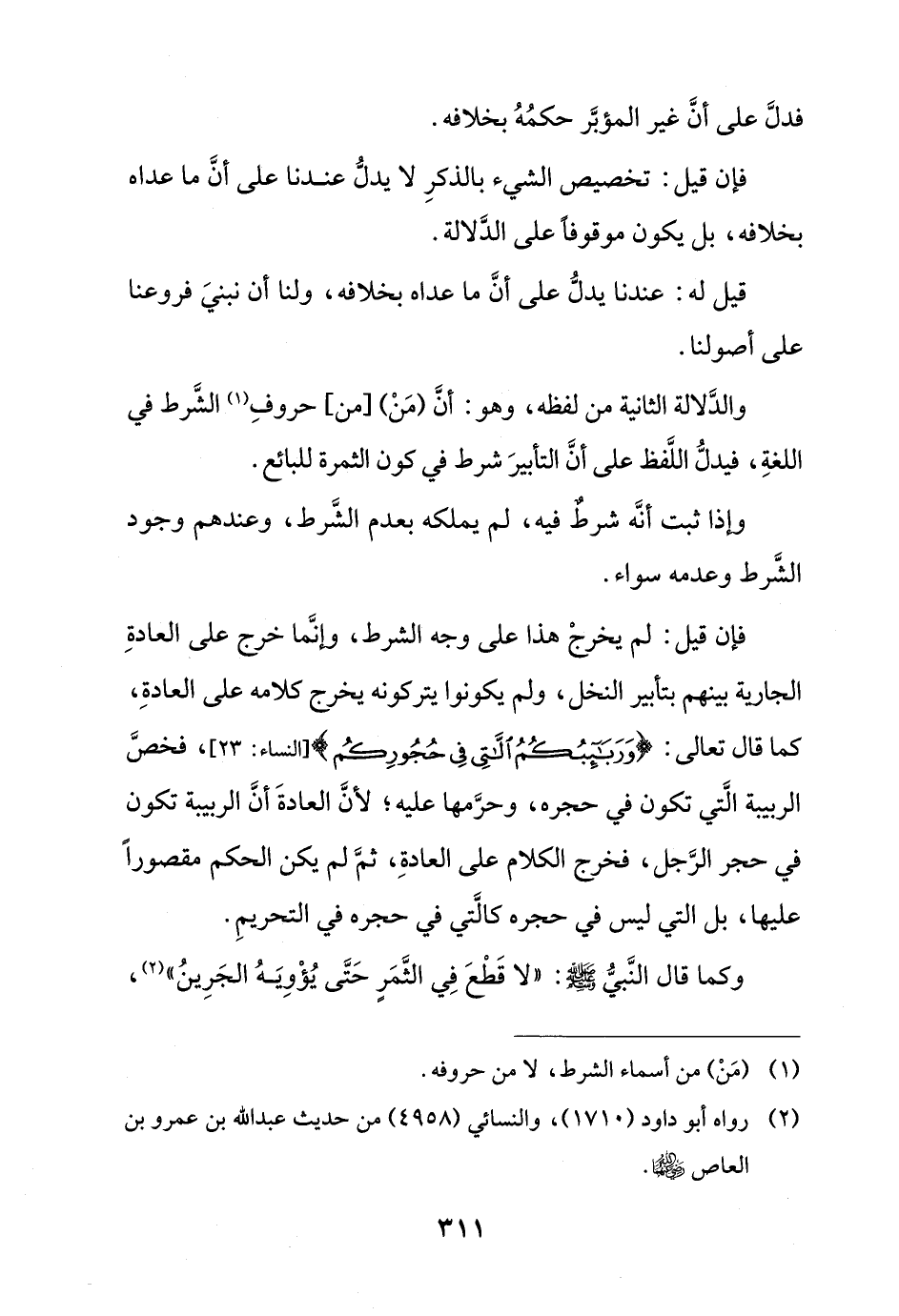 والدلالة الثانية من لفظه، وهو: أن (من) [من] حروف الشرط في اللغة، فيدل اللفظ على أن التأبير شرط في كون الثمرة للبائع.
