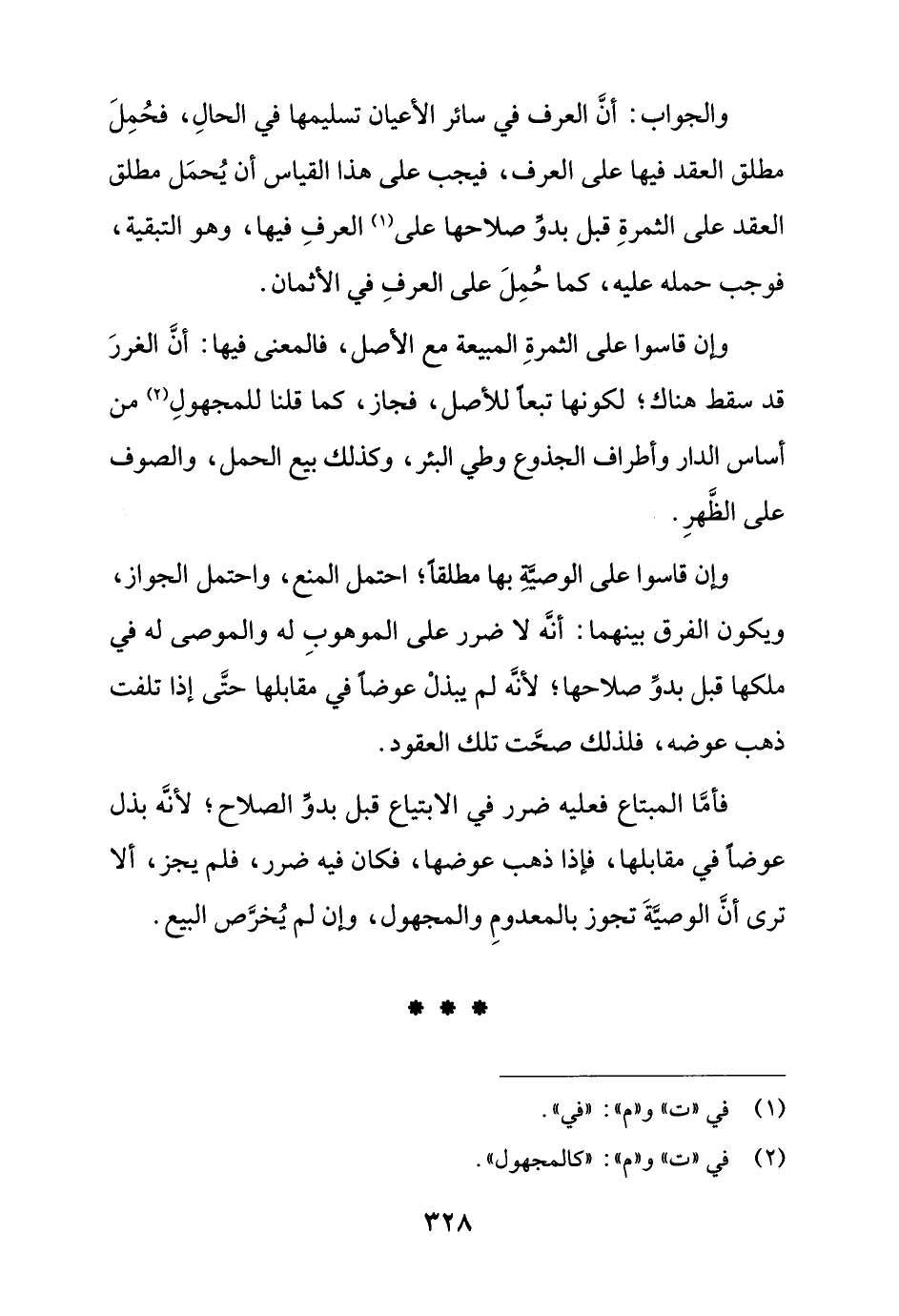 والجواب: أن العرف في سائر الأعيان تسليمها في الحال، فحمل مطلق العقد فيها على العرف، فيجب على هذا القياس أن يحمل مطلق العقد على الثمرة قبل بدو صلاحها على العرف فيها، وهو التبقية، فوجب حمله عليه، كما حمل على العرف في الأثمان.