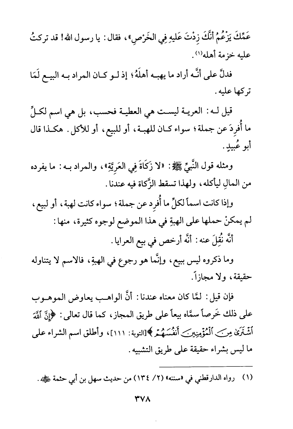 فإن قيل: لما كان معناه عندنا: أن الواهب يعاوض الموهوب على ذلك خرصًا سماه بيعًا على طريق المجاز، كما قال تعالى: {إنَّ اللَّهَ اشْتَرَى مِنَ المُؤْمِنِينَ أَنفُسَهُم} [التوبة: 111]، وأطلق اسم الشراء على ما ليس بشراء حقيقة على طريق التشبيه.
