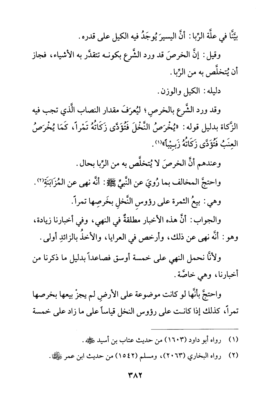 وقيل: إن الخرص قد ورد الشرع بكونه تتقدر به الأشياء، فجاز أن يتخلص به من الربا.