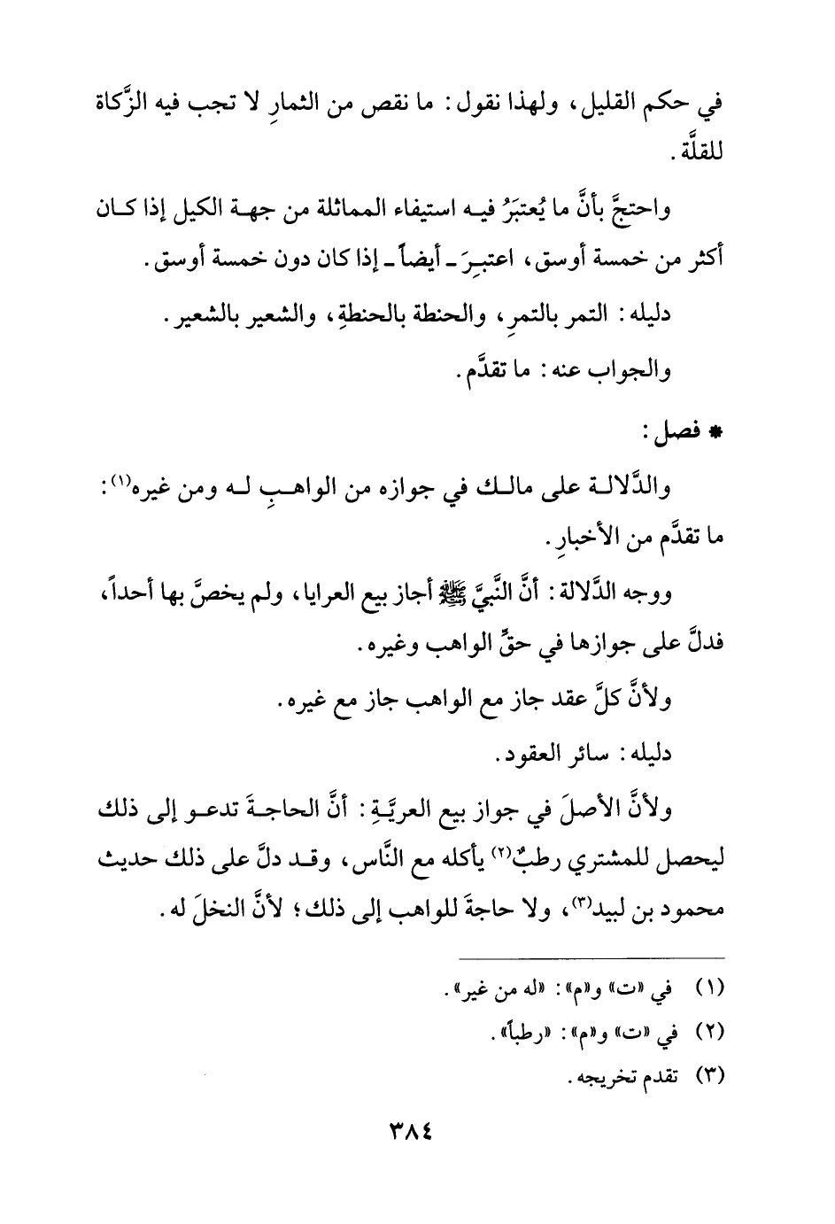 ووجه الدلالة: أن النبي - صلى الله عليه وسلم - أجاز بيع العرايا، ولم يخص بها أحدًا، فدل على جوازها في حق الواهب وغيره.