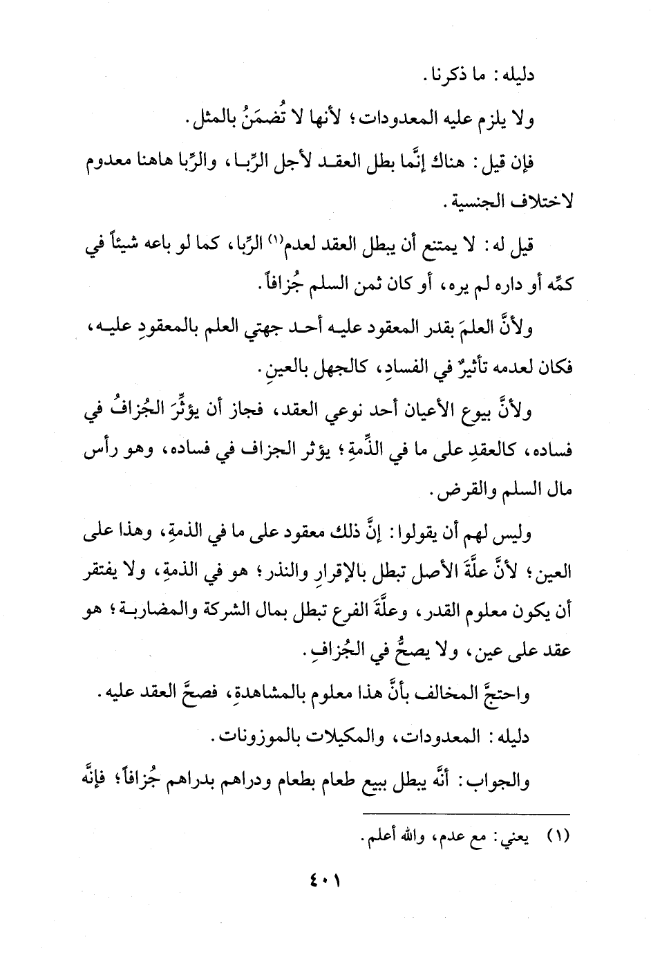 قيل له: لا يمتنع أن يبطل العقد لعدم الربا, كما لو باعه شيئًا في كمه أو داره لم يره, أو كان ثمن السلم جزافًا.