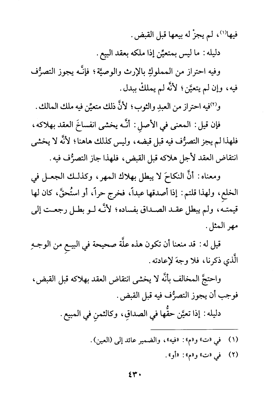 واحتج المخالف بأنه لا يخشى انتقاض العقد بهلاكه قبل القبض, فوجب أن يجوز التصرف فيه قبل القبض.