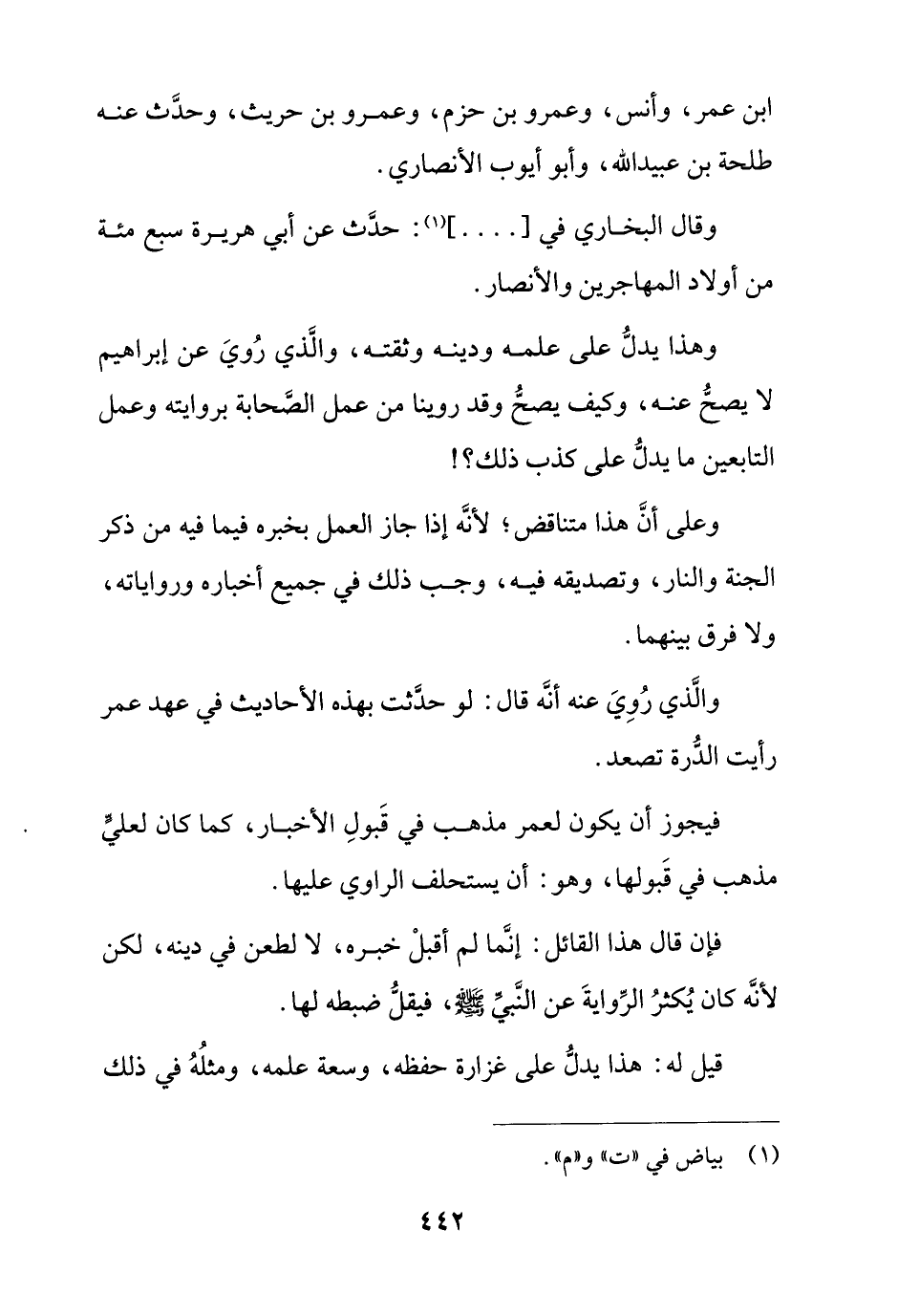 وهذا يدل على علمه ودينه وثقته, والذي روي عن إبراهيم لا يصح عنه, وكيف يصح وقد روينا من عمل الصحابة بروايته وعمل التابعين ما يدل على كذب ذلك؟!