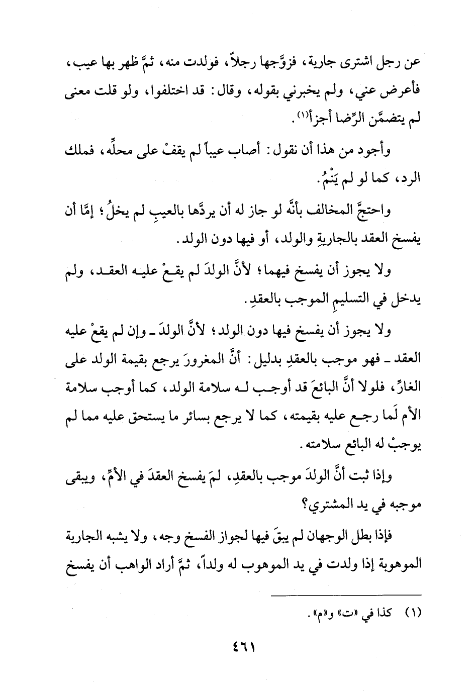 ولا يجوز أن يفسخ فيها دون الولد؛ لأن الولد- وإن لم يقع عليه العقد- فهو موجب بالعقد بدليل: أن المغرور يرجع بقيمة الولد على الغار, فلولا أن البائع قد أوجب له سلامة الولد, كما أوجب سلامة الأم لما رجع عليه بقيمته, كما لا يرجع بسائر ما يستحق عليه مما لم يوجب له البائع سلامته.
