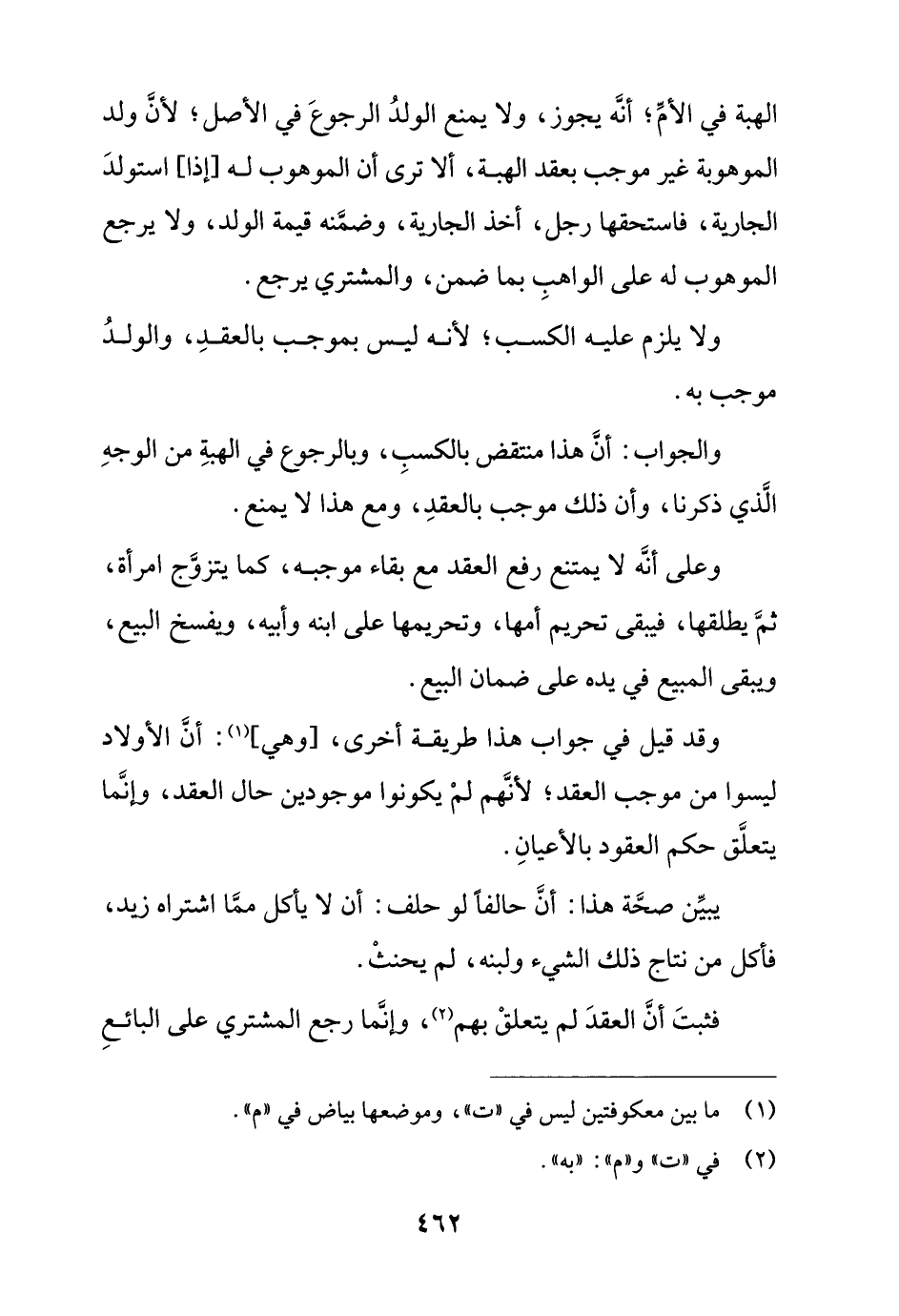والجواب: أن هذا منتقض بالكسب, وبالرجوع في الهبة من الوجه الذي ذكرنا, وأن ذلك موجب بالعقد, ومع هذا لا يمنع.