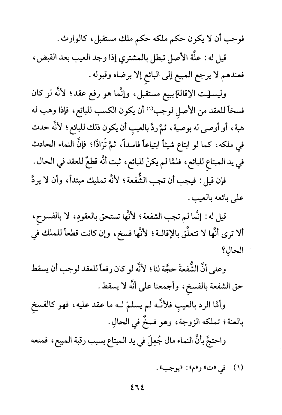 وعلى أن الشفعة حجة لنا؛ لأنه لو كان رفعًا للعقد لوجب أن يسقط حق الشفعة بالفسخ, وأجمعنا على أنه لا يسقط.