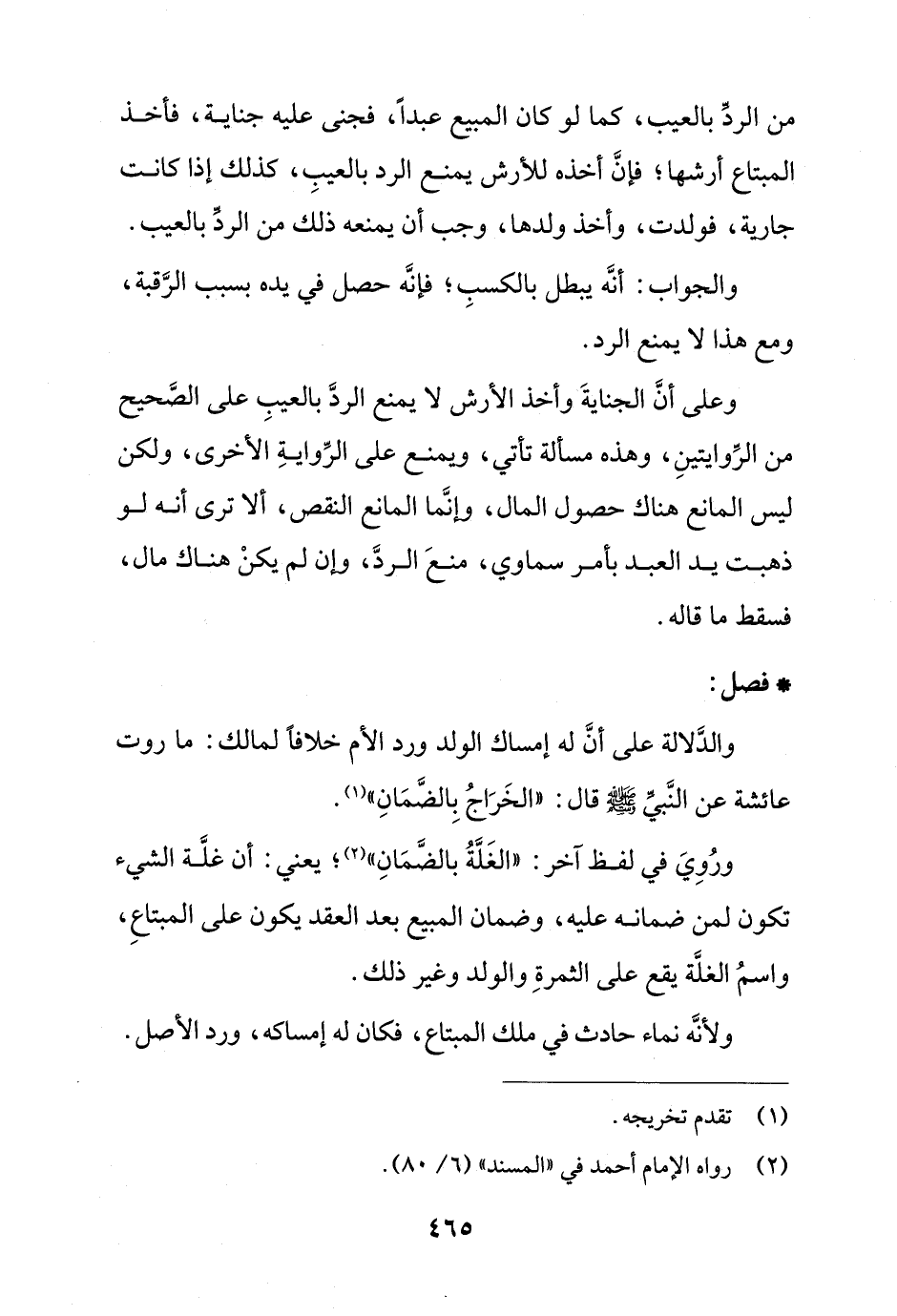 من الرد بالعيب, كما لو كان المبيع عبدًا, فجنى عليه جناية, فأخذ المبتاع أرشها؛ فإن أخذه للأرش يمنع الرد بالعيب, كذلك إذا كانت جارية, فولدت, وأخذ ولدها, وجب أن يمنعه ذلك من الرد بالعيب.
