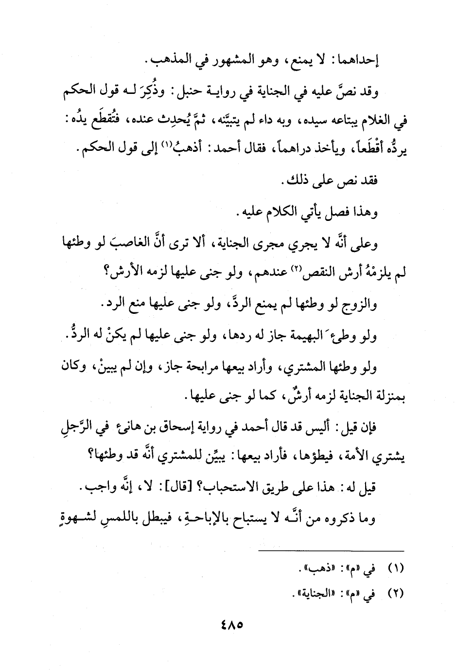 وقد نص عليه في الجناية في رواية حنبل: وذكر له قول الحكم في الغلام يبتاعه سيده، وبه داء لم يتبينه، ثم يحدث نده، فتقطع يده: يرده أقطعًا، ويأخذ دراهمًا، فقال أحمد: أذهب إلى قول الحكم.
