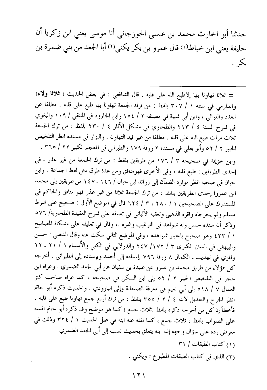حدثنا أبو الحارث محمد بن عيسى الجوزجاني ، أَخْبَرنا موسى ، يَعنِي ابن زكريا ان خليفة ، يَعنِي ابن خياط قال عَمْرو بن بكر يكنى أبا الجعد من بني ضمرة بن بكر.