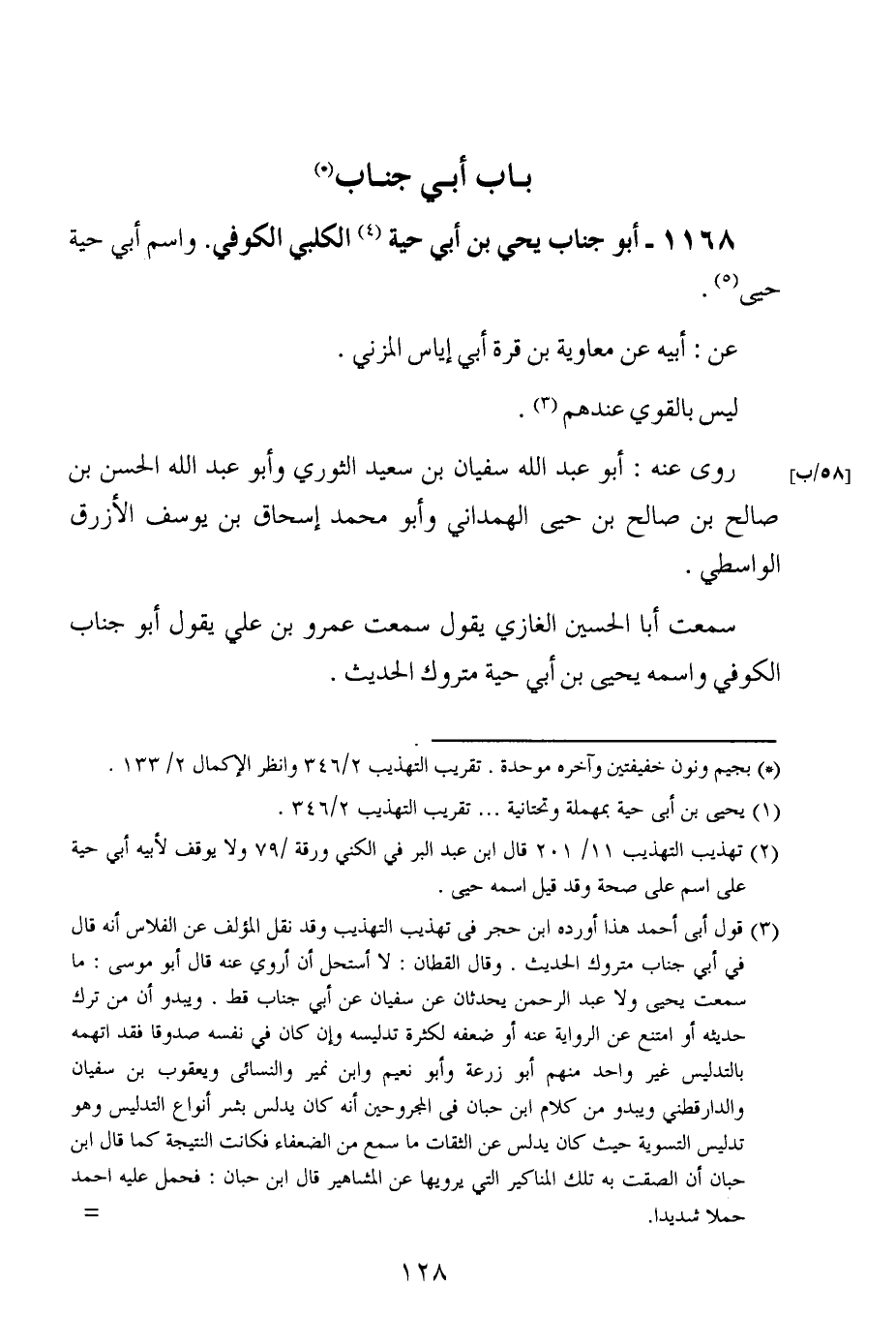 1168- أبو جناب يحيى بن أبي حية الكلبي الكوفي.