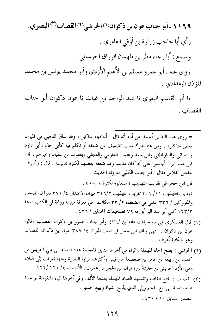 1169- أبو جناب عون بن ذكوان الحرشي القصاب البصري.