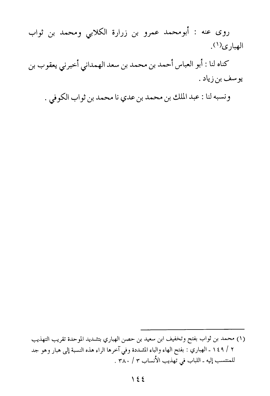 ونسبه لنا عبد الملك بن محمد بن عدي ، حَدَّثنا محمد بن ثواب الكوفي.