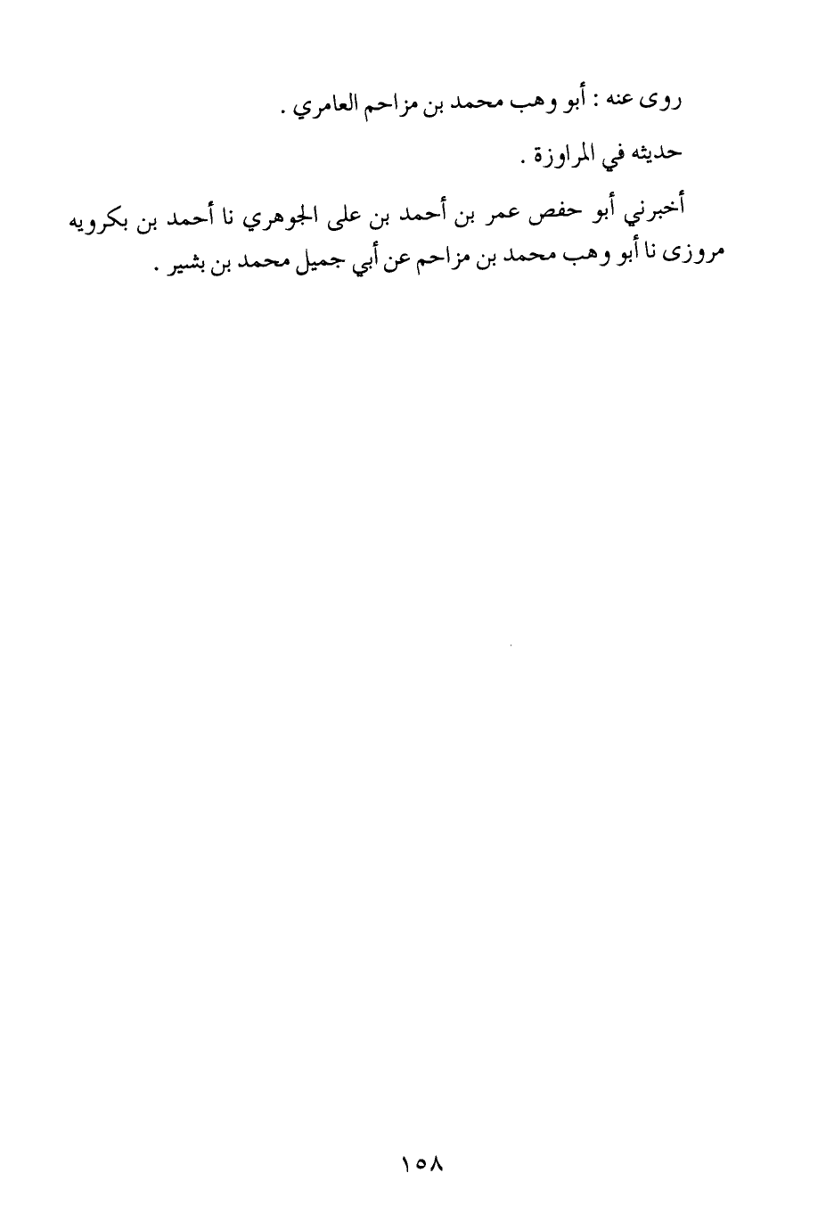 أخبرني أبو حفص عُمَر بن أحمد بن علي الجوهري ، حَدَّثنا أحمد بن بكروية مروزى ، حَدَّثنا أبو وَهب محمد بن مزاحم عن أبي جميل محمد بن بشير.