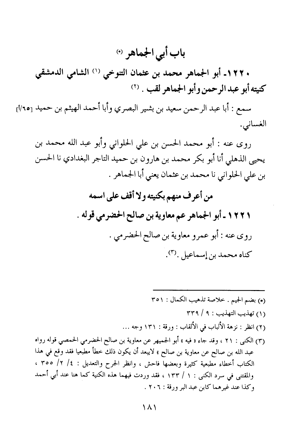 1220- أبو الجماهر محمد بن عثمان التنوخي الشامي الدمشقي كنيته أبو عبد الرحمن ، وَأبُو الجماهر لقب.