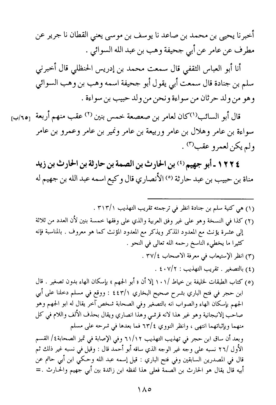 أَخْبَرنا العباس الثقفي ، قال : سَمِعتُ محمد بن إدريس الحنظلي قال أخبرني سلم بن جنادة ، قال : سَمِعتُ أبي يقول أبو جحيفة اسمه وَهب بن وَهب السوائي ، وَهُو من ولد حرثان من سواءة ونحن من ولد حبيب بن سواءة.