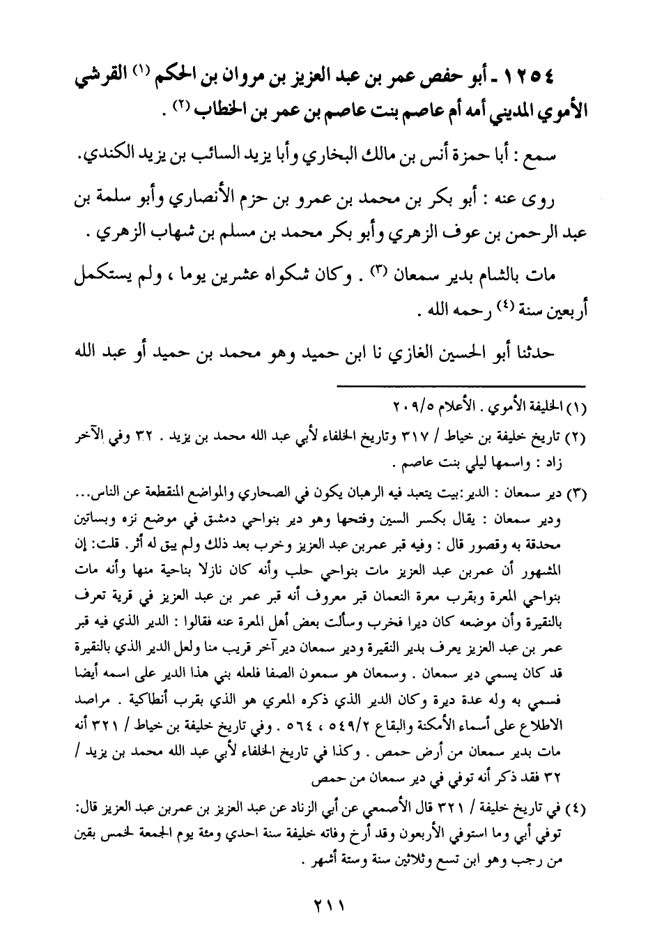 1254- أبو حفص عُمَر بن عبد العزيز بن مروان بن الحكم القرشي الأموي المديني أمه ام عاصم بنت عاصم بن عُمَر بن الخطاب.