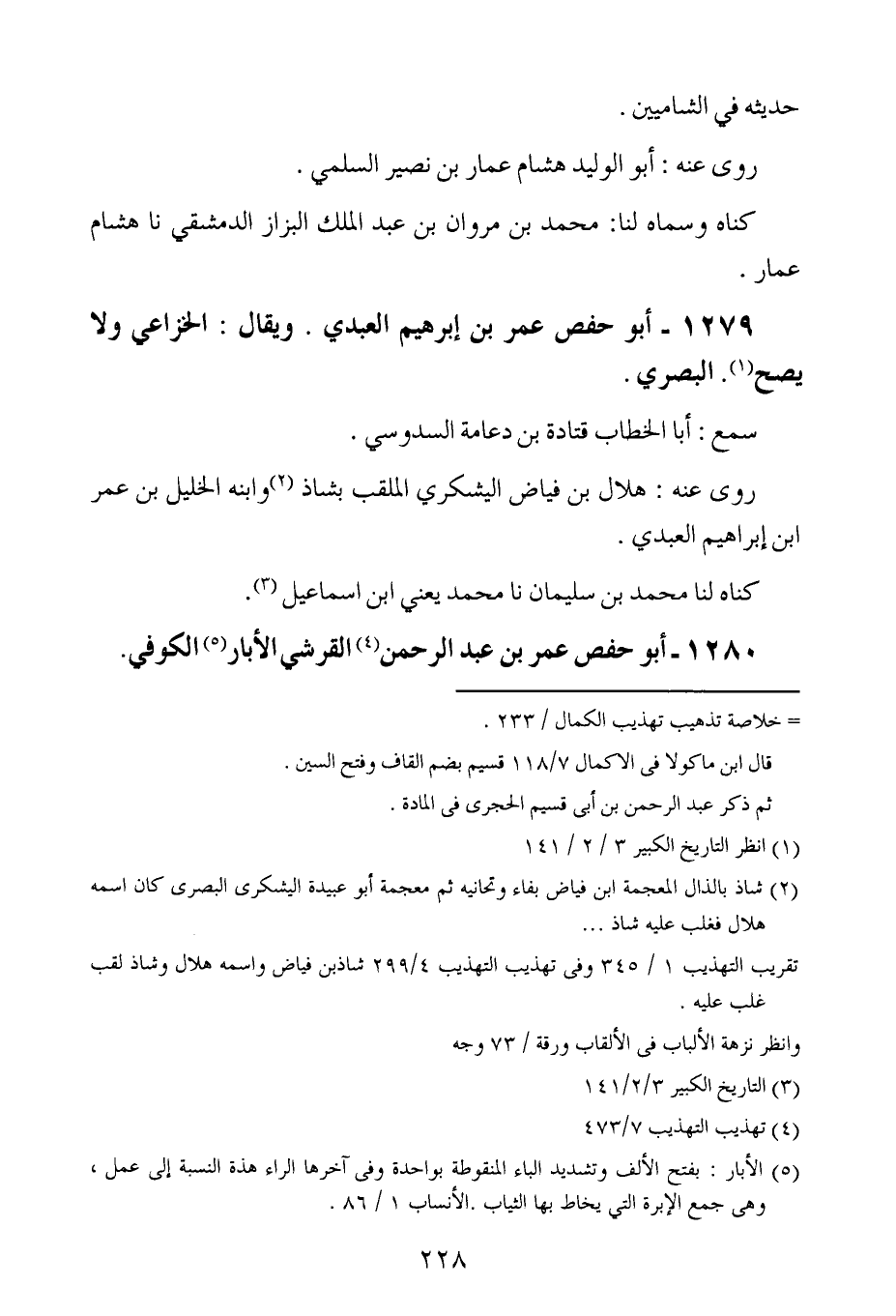 1279- أبو حفص عُمَر بن إبراهيم العبدي.