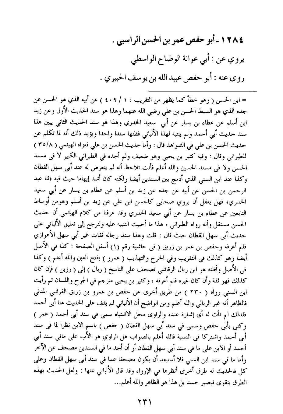 1284- أبو حفص عُمَر بن الحسن الراسبي.