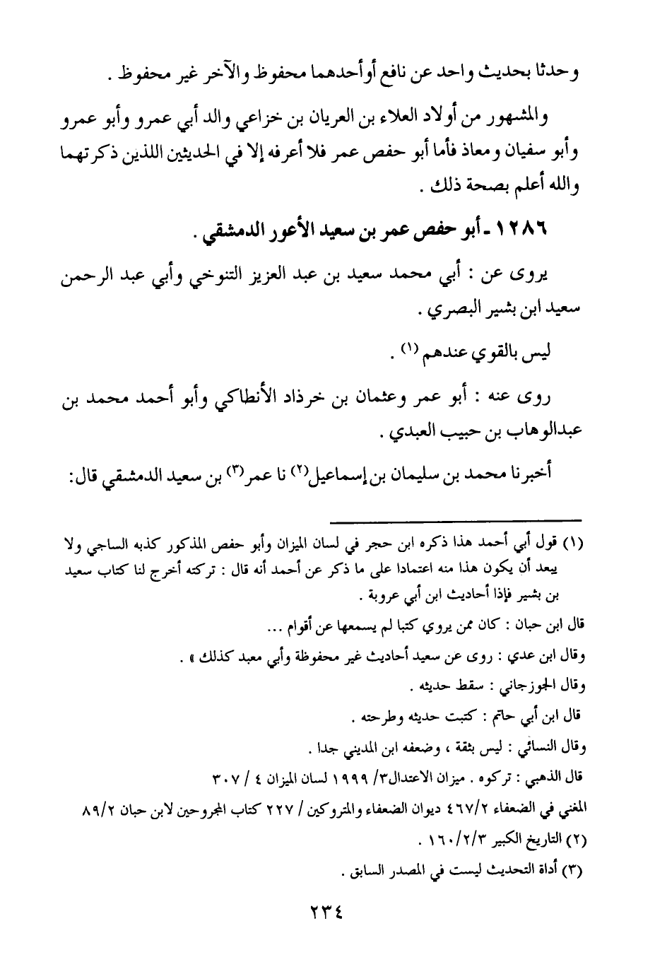 1286- أبو حفص عُمَر بن سعيد العور الدمشقي.