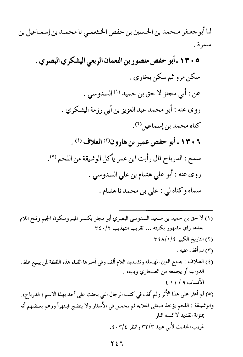 1305- أبو حفص منصور بن النعمان الربعي اليشكري البصري.