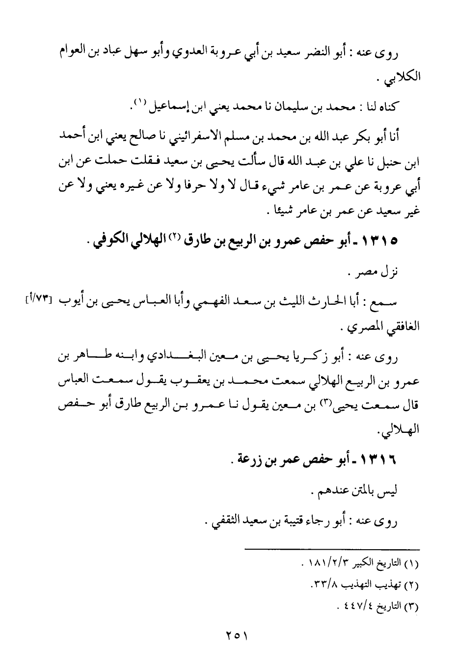 1315- أبو حفص عَمْرو بن الربيع بن طارق الهلالي الكوفي.
