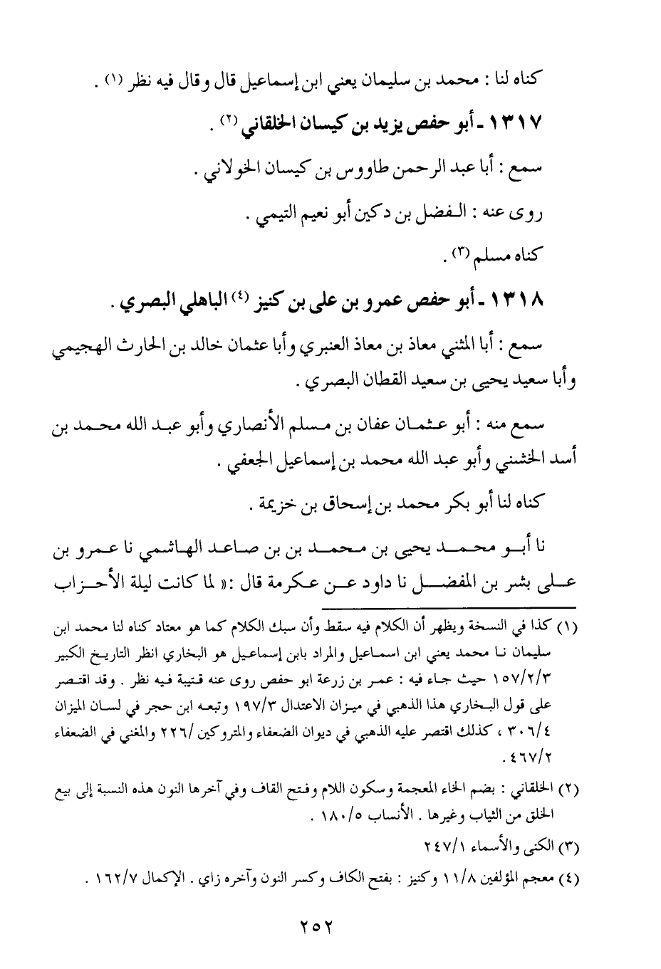 1318- أبو حفص عَمْرو بن علي بن كنيز الباهلي البصري.