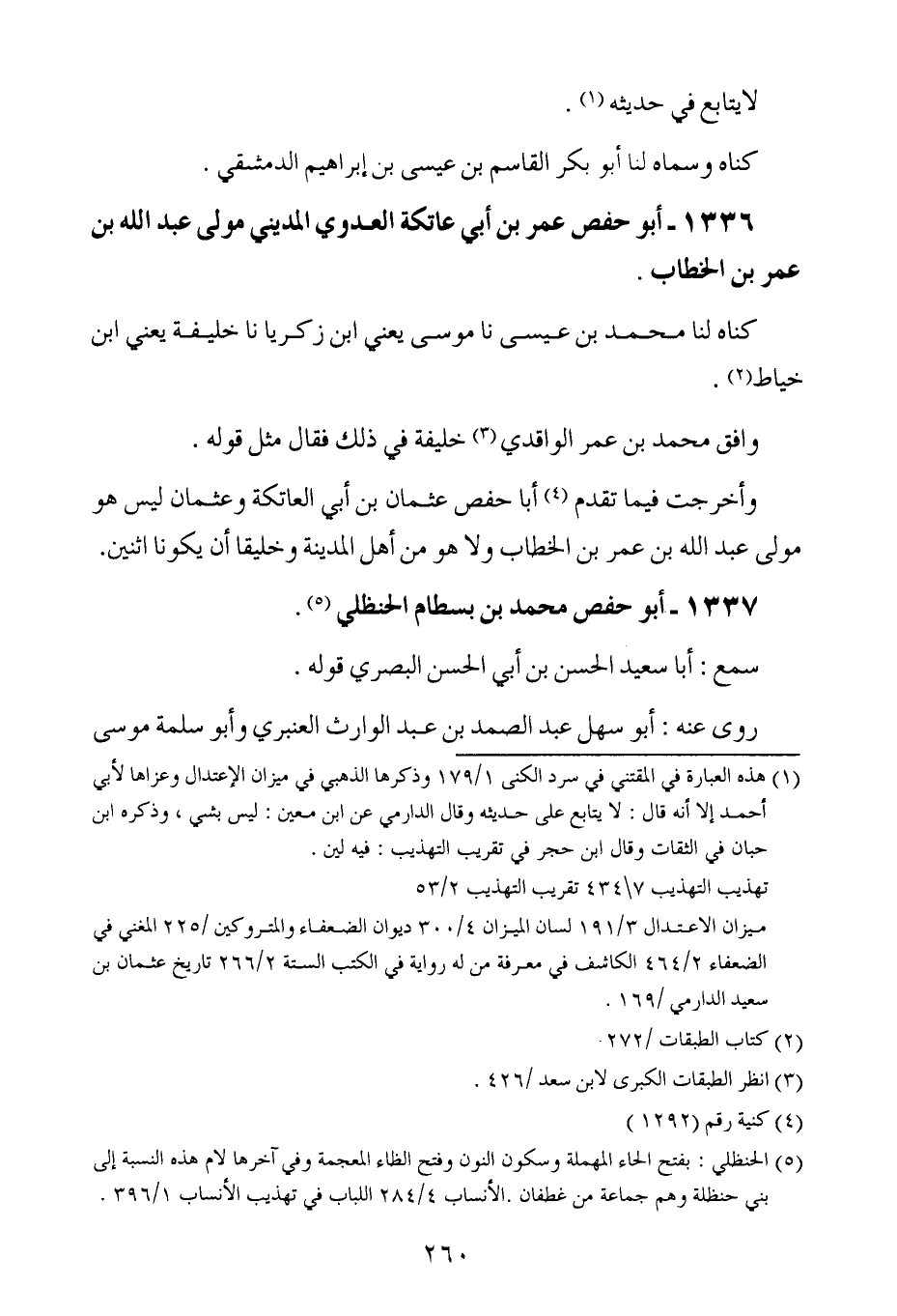 1336- أبو حفص عُمَر بن أبي عاتكة العدوي المديني مولى عبد الله بن عُمَر بن الخطاب.