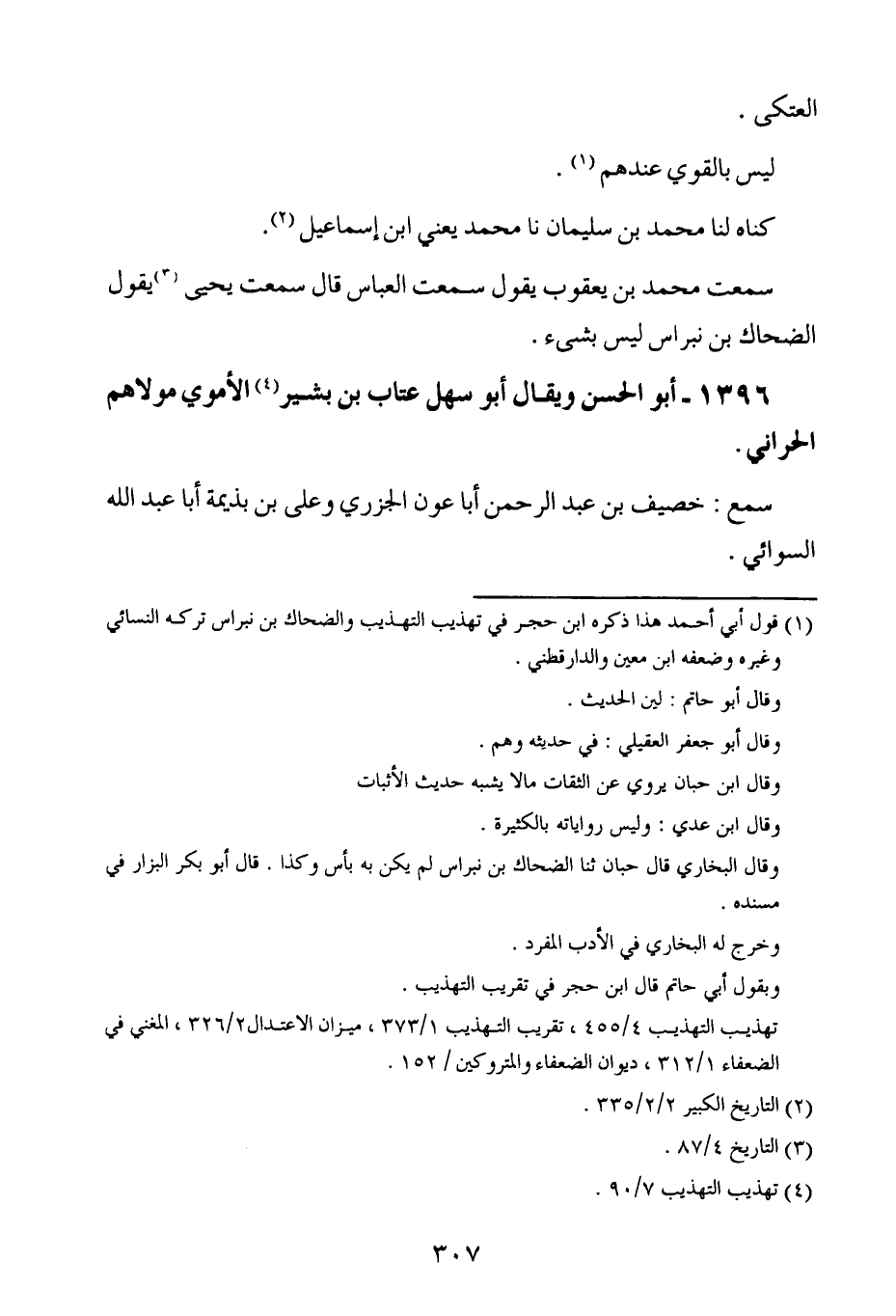 1396- أبو الحسن ، وَيُقَال : أبو سهل عتاب بن بشير الأموي مولاهم الحراني.