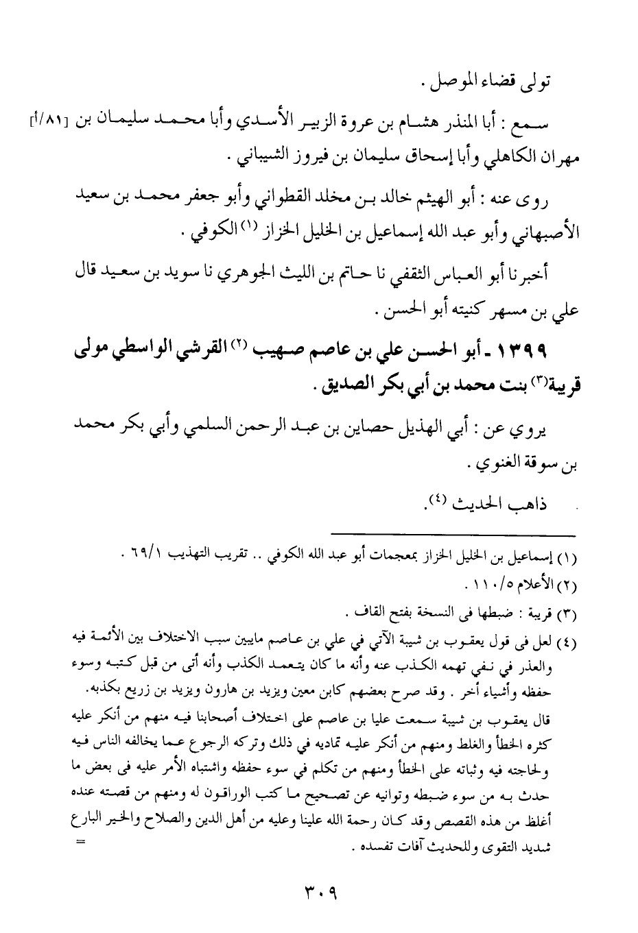 1398- أبو الحسن علي بن مسهر القرشي الكوفي أخو عبد الرحمن.